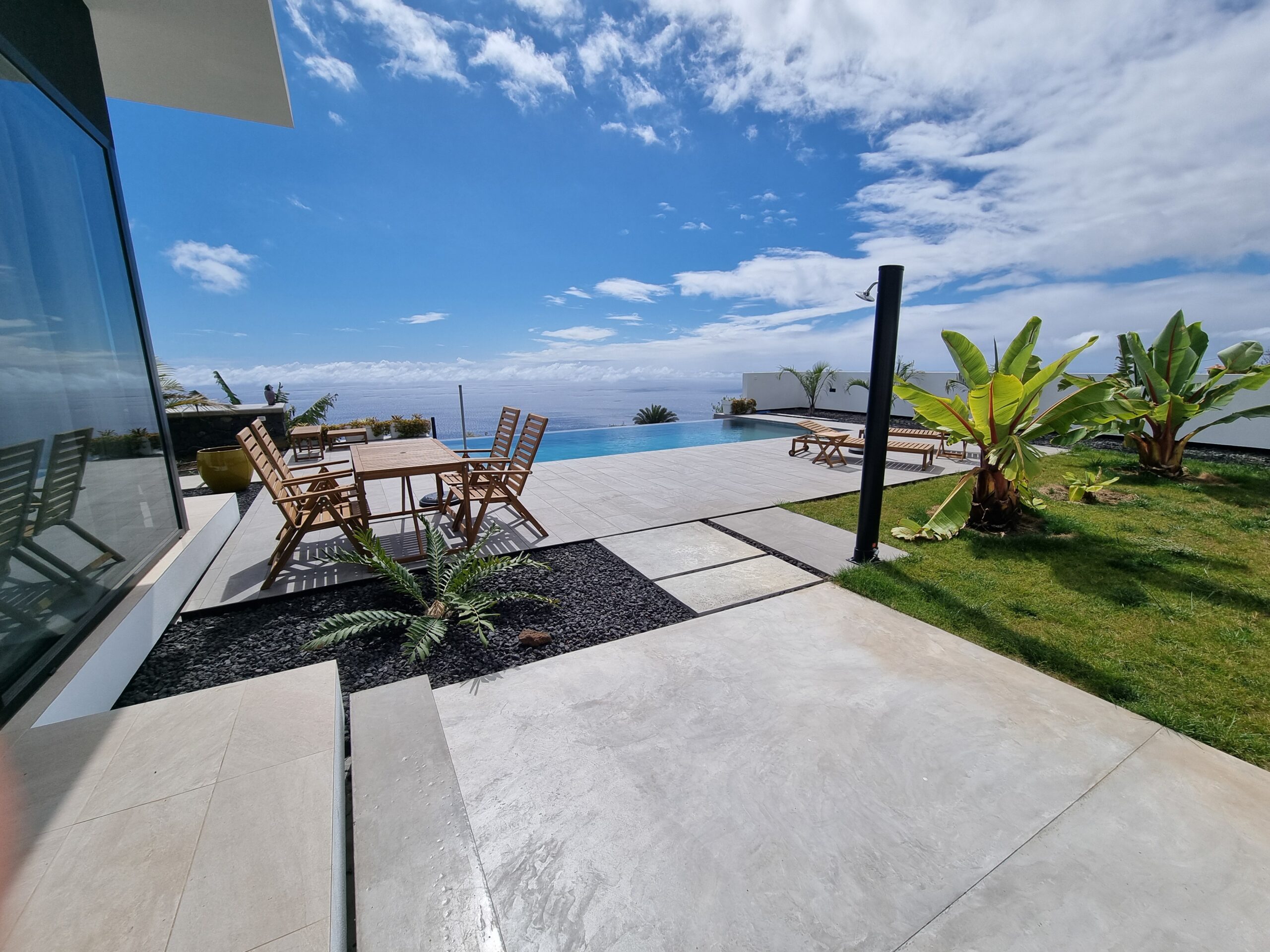 En el exterior se puede disfrutar de piscina climatizada de 32m2, ducha solar, tumbonas, barbacoa, jardín tropical con variedad de palmeras, amplio aparcamiento privado.